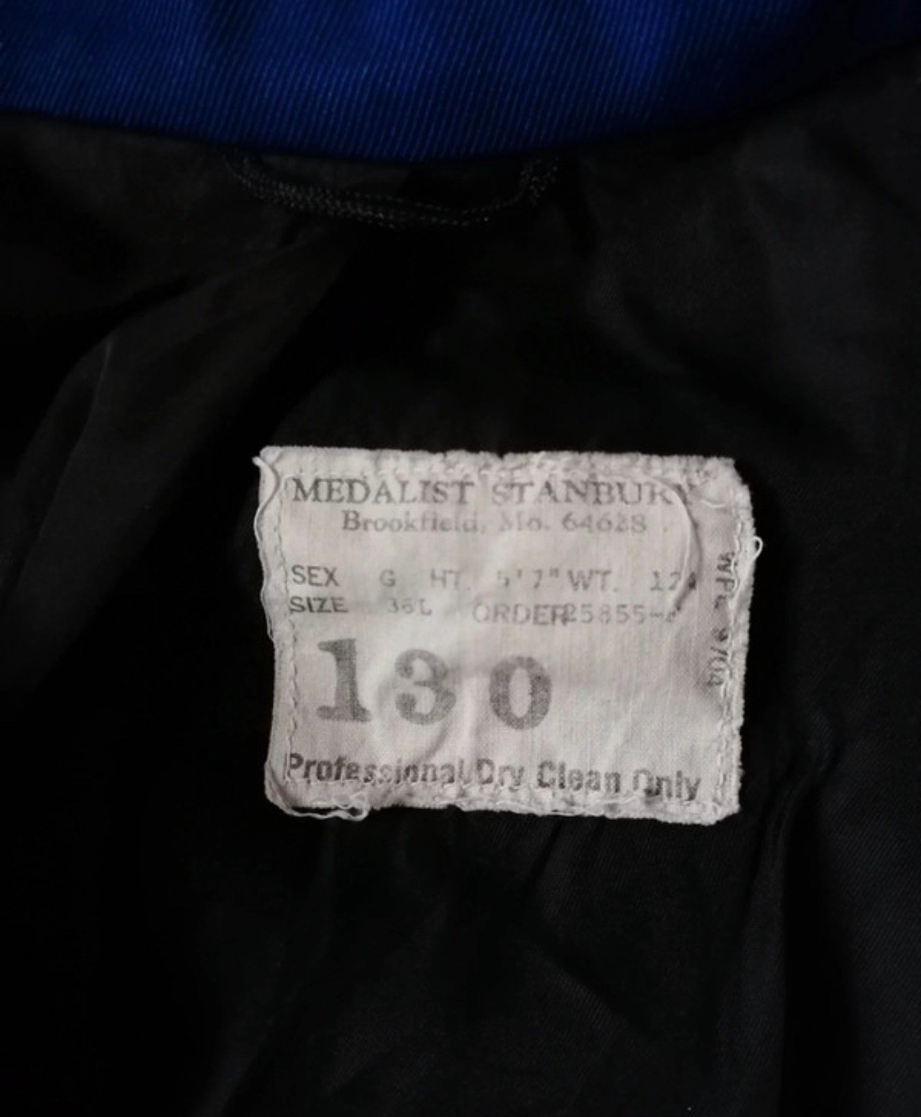 Étiquette intérieure : 130 (correspond à un ancien système de taille, probablement costume)